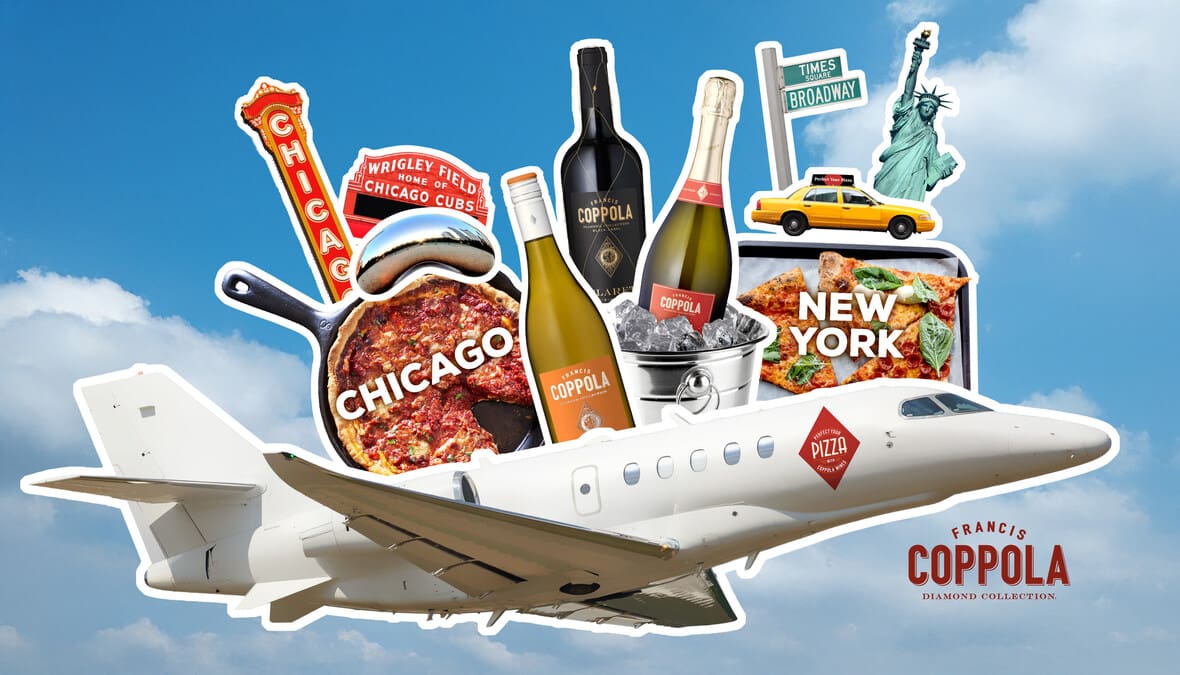 FRANCIS FORD COPPOLA WINERY GIVES PIZZA LOVERS CHANCE TO WIN A CROSS-COUNTRY PIZZA & WINE TASTING TOUR BY PRIVATE JET