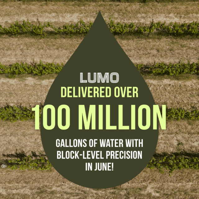 In June, growers used Lumo to precisely deliver over a hundred million gallons of water.That’s over two million bathtubs full.Last week, the system delivered over 40+ million gallons as temperat